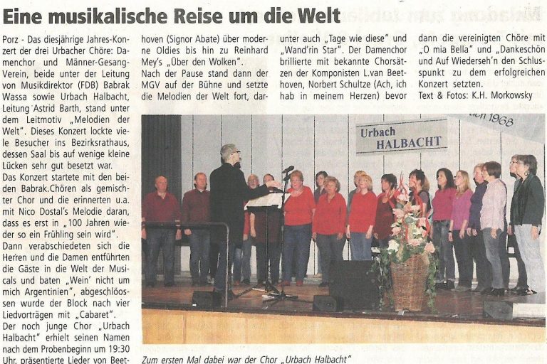 Das Jahreskonzert der Urbacher Chöre hat eine lange Tradition und ist sehr beliebt. 2014 durften wir zum ersten Mal dabei sein.